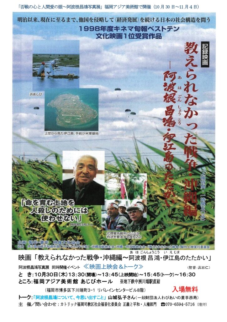 映画「教えられなかった戦争・沖縄編~阿波根昌鴻・伊江島のたたかい」 <映画上映会&トーク>
