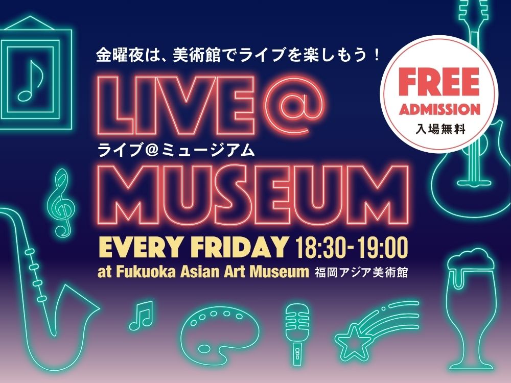 毎週金曜日の18:30から、福岡アジア美術館アートカフェにて音楽や伝統芸能などのミニライブを実施します。