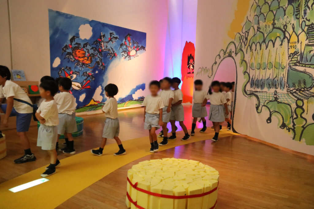 絵本ミュージアムは、オリジナルの企画展で、その特徴は、親子や子ども同士が、楽しく絵本や物語の世界を体感できる展示や空間、先端技術を活用したデジタルコンテンツの展示というところにあります。見るだけでなく、身体全体を使ってファンタジーの世界を楽しめる構成となっており、子どもたちが “絵本”を通して感じることや表現することの素晴らしさを体感でき、親と子、子ども同士、そして親子と社会をつなぐ場として、たいへん多くの方々に支持されてきました。