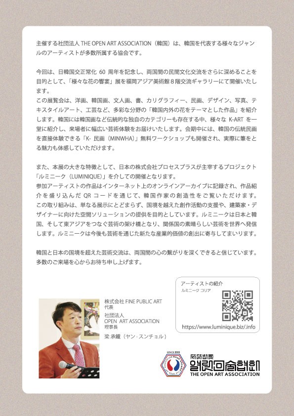 主催する 社団法人 THE OPEN ART ASSOCIATION(韓国) は、多彩なジャ