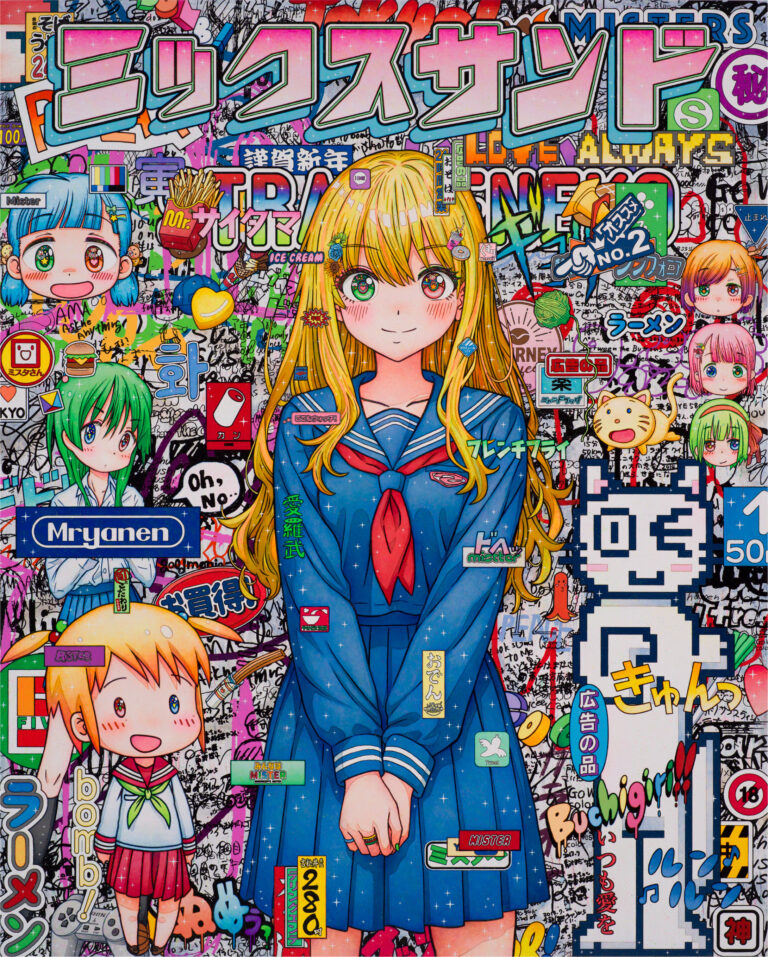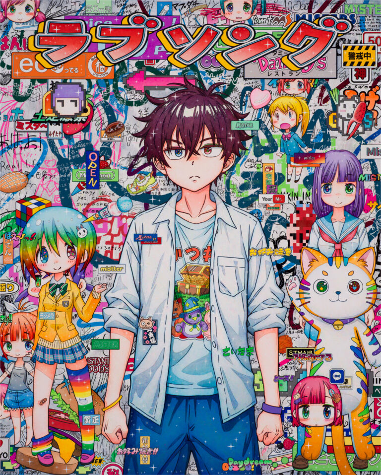 Mr.(ミスター/1969年生まれ)は、漫画やアニメ、ゲームといった「オタク文化」を現代アートの文脈へと落とし込み、新たな芸術的価値を創出したアーティストです。1996年のデビュー以降、絵画をはじめ多彩な手法による作品を制作し、国内外で精力的な活動を続けてきました。日本固有のポップカルチャーを芸術へと昇華させたその独自のスタイルは、国際的に高い評価を受けています。