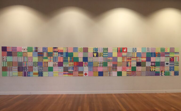 10月16日 ワークショップ 「みんなでサ~ンしよう!」作品展示(福岡アジア美術館、アジアギャラリー前)