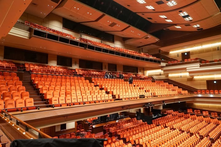 普段は立ち入ることのできない舞台下の空間「奈落」や、転換を支える「舞台袖」、楽屋など、劇場の裏側を中心に見学し、最後に約1500席を有する客席に移動し、どの席からも観やすい3層構造を体感した。