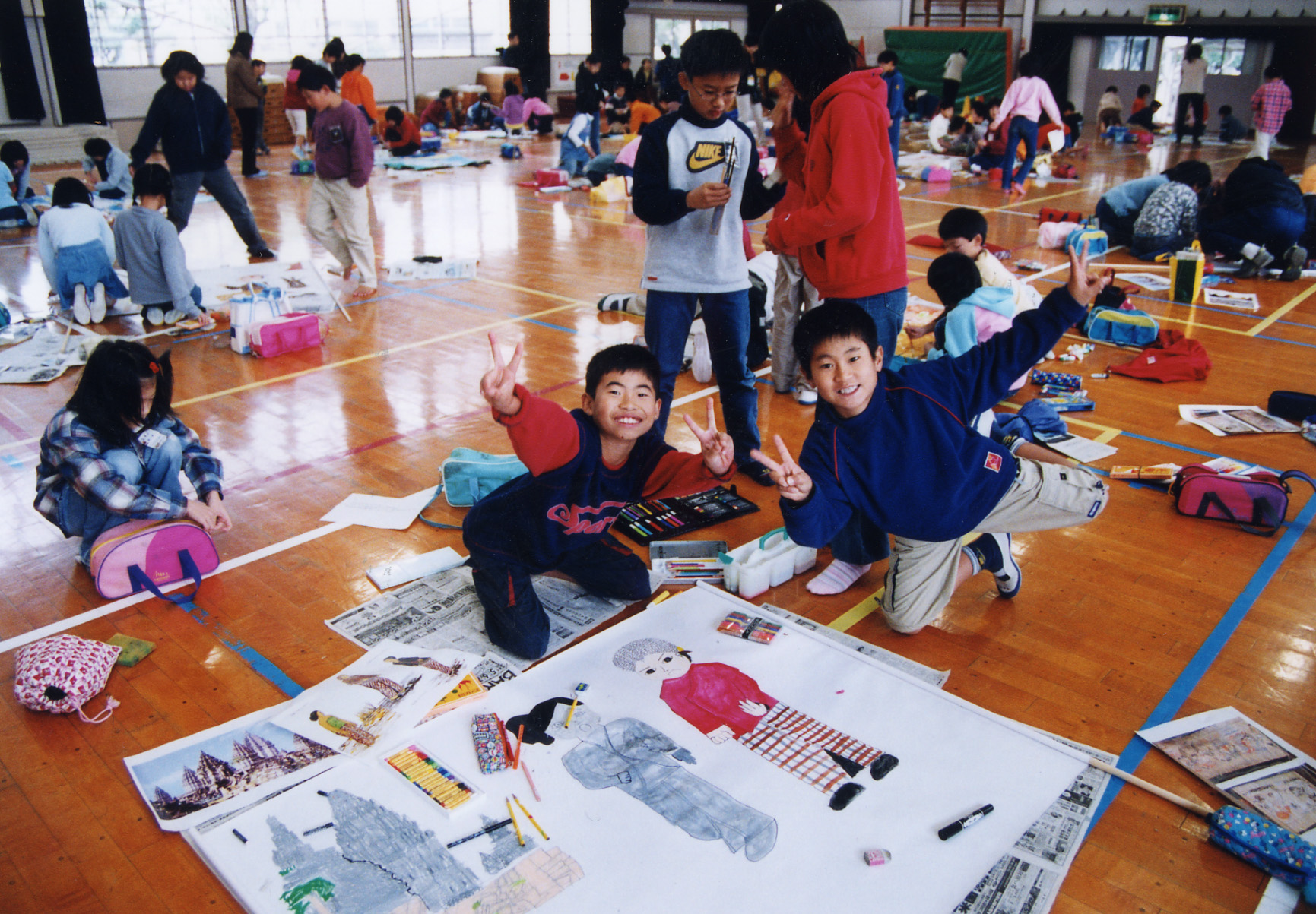 再び小学校へ行き、使われなくなった太鼓やおはじきなどを持ち帰る。